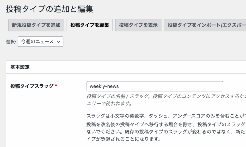 作成した投稿タイプは後から修正することができます。